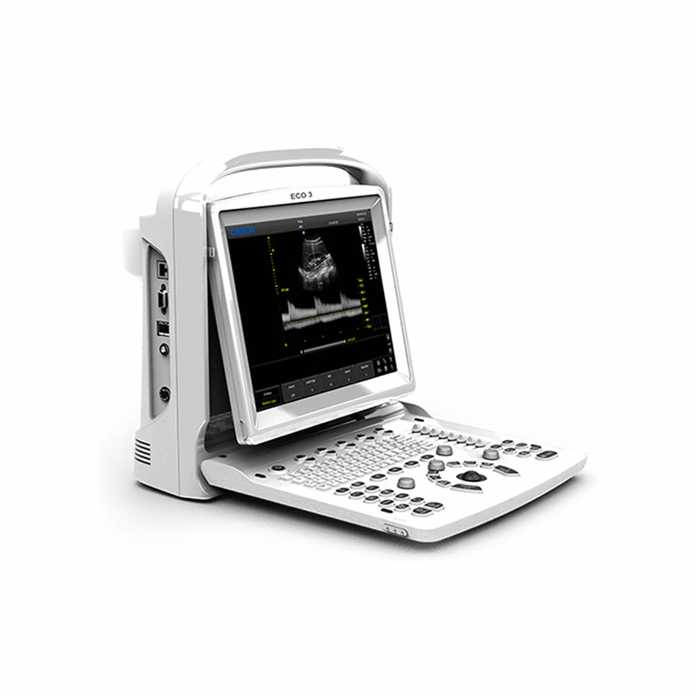 El Chison ECO3 Vet es un ecógrafo portátil blanco y negro, con una interfaz intuitiva y funciones avanzadas para mejorar la calidad de imagen. Su pantalla LED de 12” con inclinación de 30º permite una visualización cómoda, mientras que su diseño compacto facilita su transporte.